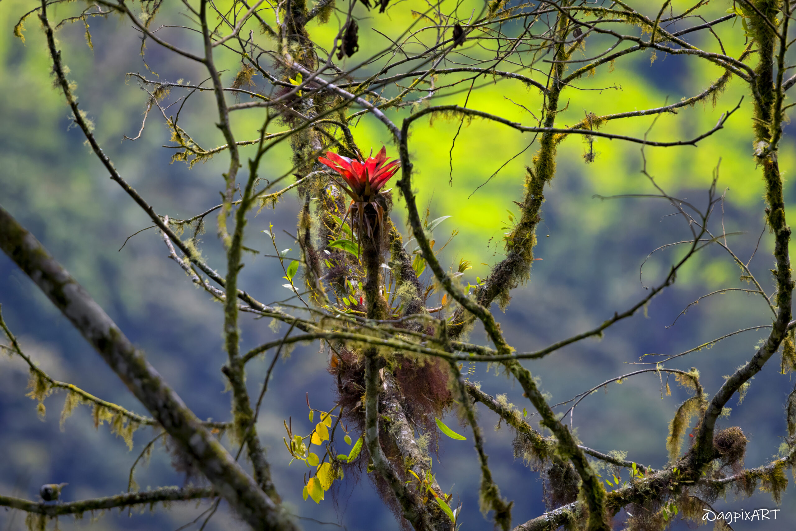 Situated where the Chocó and Andean ecosystems meet, the refuge boasts diverse flora and fauna, including orchids, bromeliads, and occasional sightings of mammals like Andean bears or olinguitos.